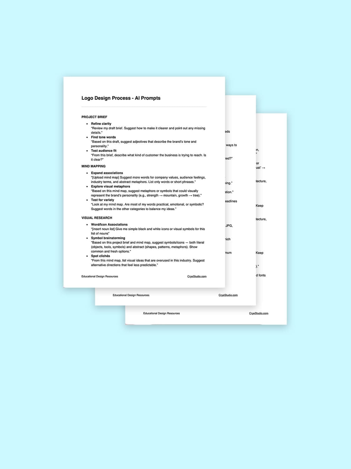 Boost your creative process with my AI Logo Design Prompt Cheat Sheet — a free guide with ready-to-use prompts for every stage of your logo design workflow.
